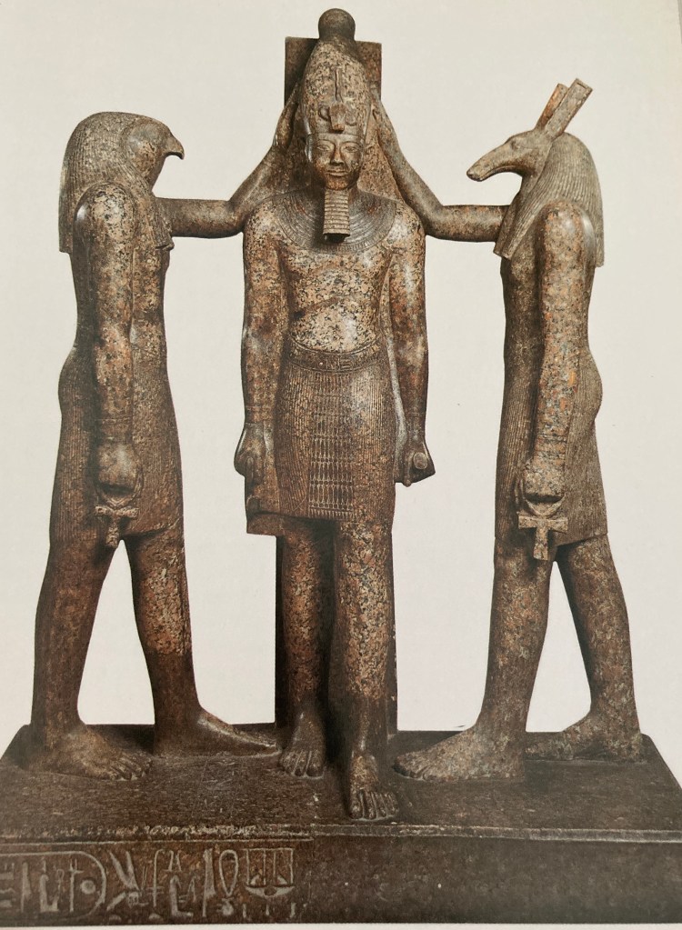 But it wasn’t always this way for Set of the Wild Acacias. As Baktka reminds Arsinoë in Chapter Two, one of Set’s oldest cosmic functions was as a protector of Ra, and by extension, all of life. For without the sun, the king of heaven, the world would be plunged into eternal darkness, personified by the snake demon Apep (Apophis). Part of Set’s duality is that he is the god of chaos, both in the sense that he is an agent of disorder and the one who can subdue it. In this he is closer to the Norse Loki or the Akan Anansi than Satan. And his worship reflects this. In Upper Egypt in places like Ombos, far from the fertile Nile delta, where the desert holds much more sway, Set was always more respected. While his cult had many ebbs and flows throughout Egypt’s long history, his last zenith was probably during the 19th/20th Dynasties (1292 BC – 1077 BC), which to give you a grounding in the timeline was over a thousand years before the birth of Arsinoë (born sometime between 68 BC and 59 BC). The greatest rulers of these dynasties were Ramses II, Ramses III, and the second Ramses’ father, Seti I, whose name literally means “Man of Set” or “He Who Belongs to Set.” All three of these pharaohs are depicted in art with Set, especially in the context shown below, where Set (right) and his nephew Horus (left) give their support to the king (here, Ramses III). In the Osiris cycle, these gods are primarily antagonists, with Horus as the avenger of his father Osiris’ murder at Set’s hands. But there is another side to the gods often referred to collectively as the Kheniu — the Fighter Gods: they fight each other, but they also fight for Egypt and hold it in balance.