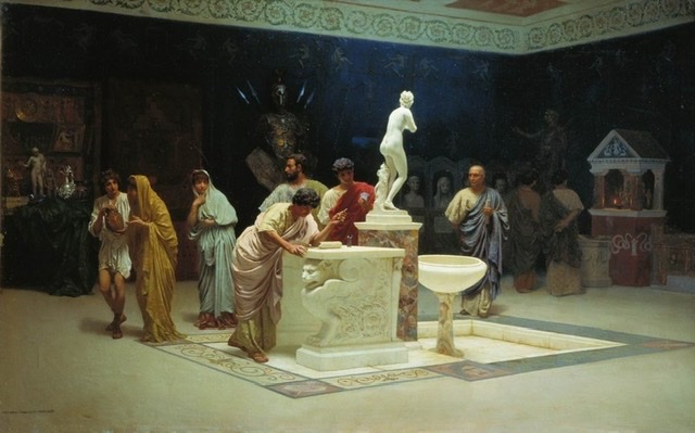But all of this isn’t to say that these two circles ostensibly under Octavius’ aegis didn’t intersect. Ovid and Propertius were known friends, and everybody like Horace too much to confine him solely to one group. And like the great literary colonies of the nineteenth and twentieth centuries in cities like Paris, it’s the interaction between the members that give us the best window into this world. It’s easy to envision Ovid, Propertius, and Tibullus cruising the notorious Subura district for girls, while Maecenas and Messalla roll their eyes and try to keep the worst from Octavius. Horace uses his poems to tease Propertius for his lovelorn elegies and scold Virgil to take care of himself, while usually begging Maecenas for some indulgence or another. Sulpicia apes the masculine style of her friends so effectively that for centuries her few surviving poems are attributed to Tibullus. Ovid might mock Virgil and Horace for kowtowing to Octavius’ opinion, but Virgil’s Aeneid would push Ovid to produce his epic Metamorphoses, his most technically brilliant poem. Even Propertius, long Virgil’s friend, would dip his toe into “serious” verse toward the end of his short life.