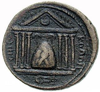 But this isn’t the only connection to Mauretania in Severus’ story, because the remains of its royal family pop up in that of his wife’s, the indomitable Julia Domna (160-217 CE). As we touched on at the end of my Mauretania entry, Julia was a member of the Emesene dynasty of Arab priest-kings serving as sub-client elites in Roman Syria, into whom the Mauretanian princess Drusilla the Younger had married in the early first century CE. While not as politically powerful as they had once been, the Emesenes were still religiously relevant to the local population because they served as the priestly caste for the sun god Ilah al-Jabal (إله الجبل), “God of the Mountain,” the reigning deity of the city of Emesa and the particular iteration of the Semitic god Ba’al in this part of Syria. The god was worshipped in his main temple as a baetyl—a sacred stone that in Ilah al-Jabal’s case was a large, conical black meteorite. Ilah al-Jabal’s cult would spread over the Greek and Roman world, where the god’s Arabic name would first be Hellenized as Elagábalos (Ἐλαγάβαλος) and then Latinized as Elagabalus.