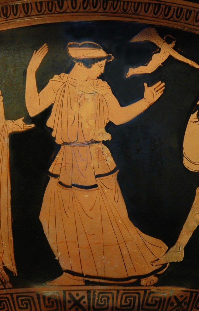 [Detail of Helen on an Attic krater, 5th century BCE]