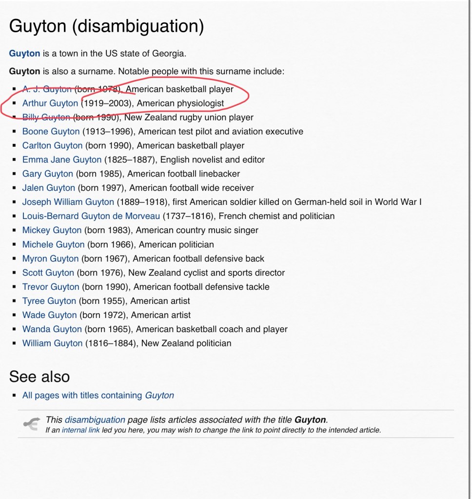 Puzzling on this, as a total shot in the dark, I stuck the last name “Guyton” into Wikipedia, just to see what came up: