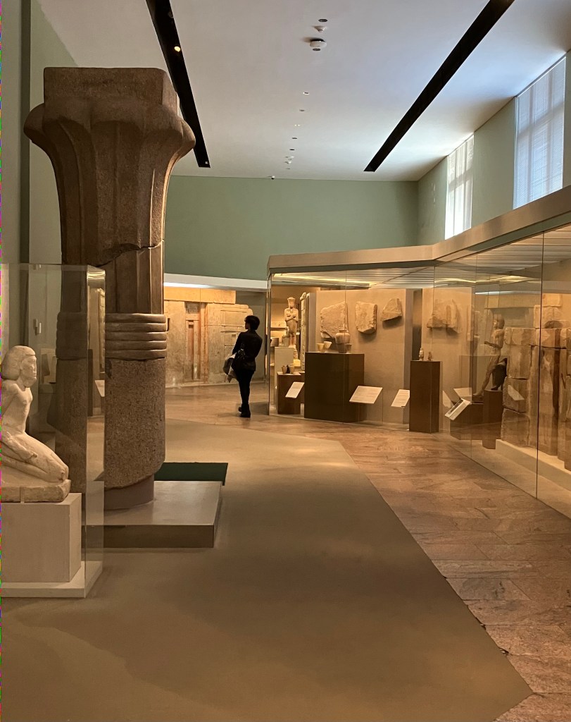 To move to an object famous enough for me to gasp when I saw it, here is one of the more well known statues of Hatshepsut, the only openly reigning woman pharaoh of the New Kingdom (1550–1069 BCE) (there are a ton of theories about Nefertiti), and one of only a handful of female rulers in Egypt prior to the Ptolemies. Unlike some statues from her reign which are more ambiguous about her gender (using traditional male symbols like the false beard, etc), here Hatshepsut is beardless and shown with breasts and a noticeably feminine face, though she still wears the masculine nemes head cloth as a symbol of her pharaonic authority. Originally from her temple at Deir el Bahri, the Met’s own expedition excavated the statue’s head and what we have of the torso from a quarry near Thebes in the 1920s, but the lower body and throne were only obtained later from the Agyptisches Museum und Papyrussammlung in Berlin at a later date, which I did not know. It was a good reminder though to pay attention to the descriptions throughout the Egyptian and Classical wings, where many of the relatively whole-looking pieces are often an amalgamation of original pieces jigsawed together, or original pieces held together with sections of 18th/19th century reproductions.