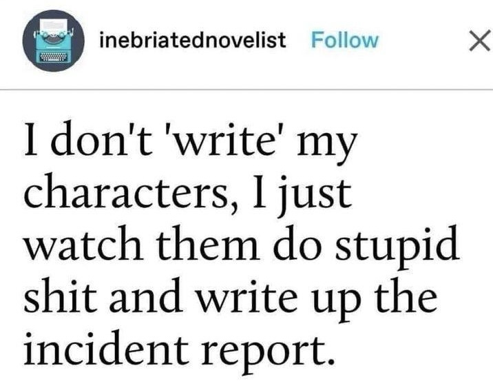 So there you go, a couple of ideas to bring out depth in your characters’ characterizations outside of knowing their golf handicap. Even if your readers don’t overtly notice these kinds of techniques within your story, they’ll feel that depth legwork in how your characters inhabit their world, and it can help their immersion and enjoyment of that world you’ve spent so much time creating. Happy writing, and please comment with any character-building techniques you’ve found worthwhile. For the same reason I justify my manic reading/book buying addiction, I’m always learning🤓