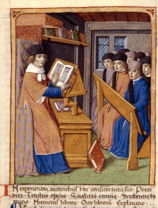 Servius, living on the border between the 4th and 5th centuries CE, is the main source of the Virgilia that is transmitted into the post-Roman period, along with the Appendix Vergiliana, a source of some of the more dubiously-attributed Virgil poems (like Culex, among others). These, plus the poet’s more established corpus (the Eclogues, the Georgics, and the Aeneid), form the basis of the early medieval knowledge base about Virgil. This is about the time, as we’ve also previously mentioned, that the newly Christian European audience for Virgil’s work is trying to, along with other ancient pagan authors, massage him into an author appropriate for good Christians to still read and admire. This is probably about the time that we get the Messianic interpretation of Eclogue 4, relevant passage below: