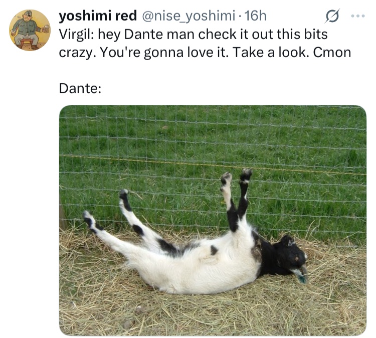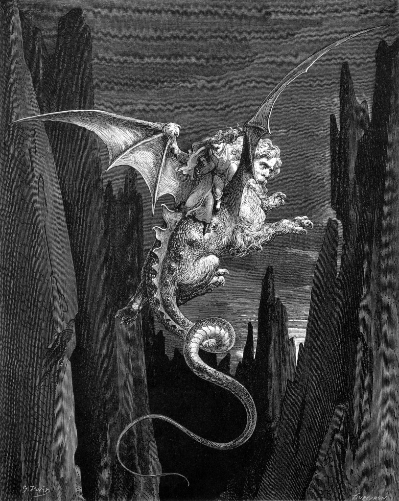[Late medieval Italians: He said that Virgilio rode a giant wyvern with a guy’s head through Hell!!]